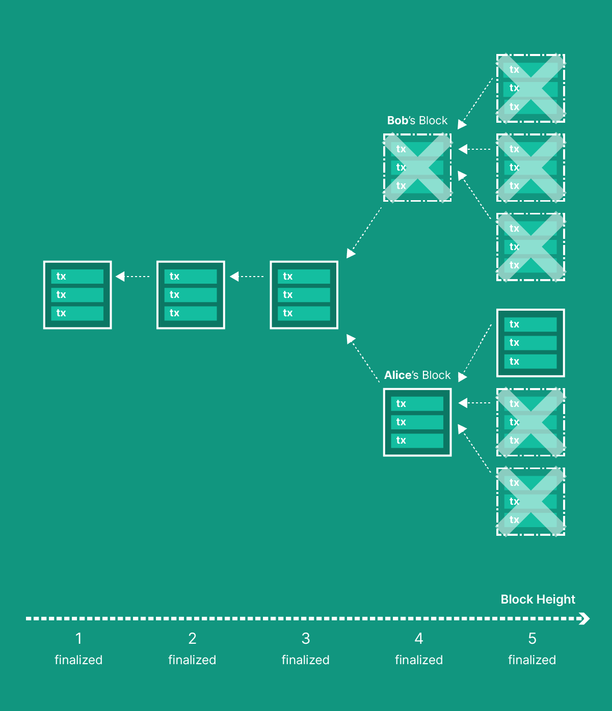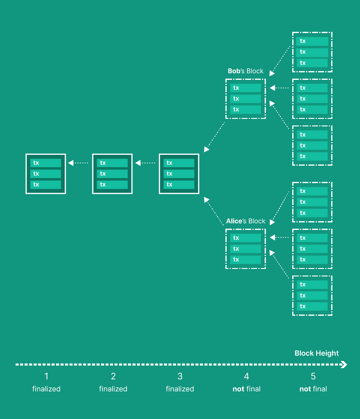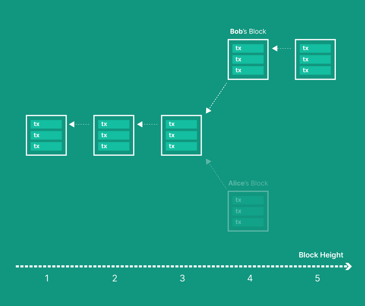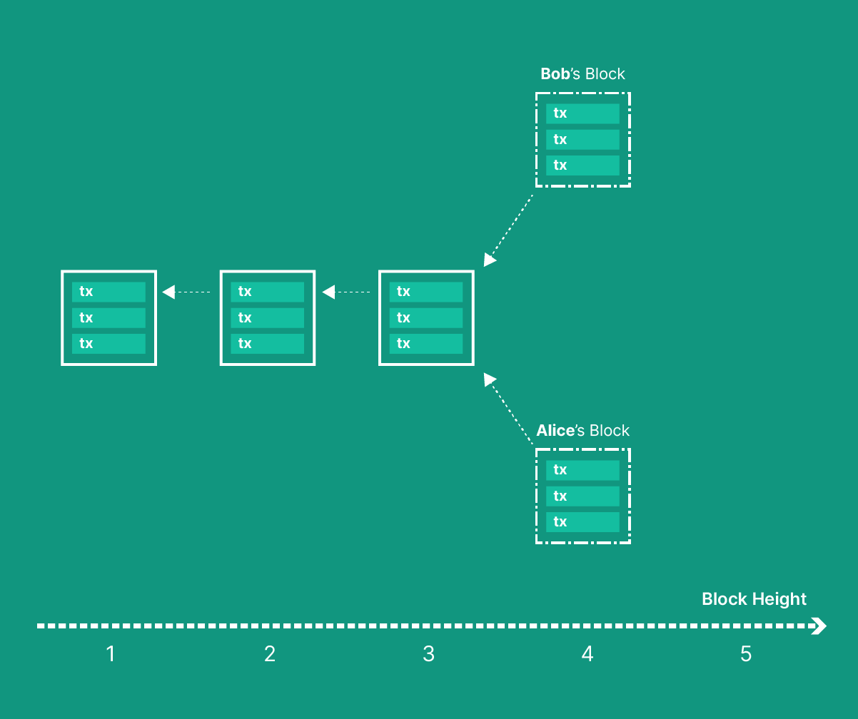 However, there is a nuance that needs to be addressed. Since miners are independent actors, different miners can mine different blocks on top of the same initial block. Because of network synchronization issues such as latency, a node will often observe “branches” in the state of the network: