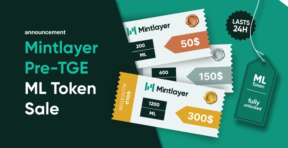 There will be a pre-TGE ML (Mintlayer token) public token sale on March 13, 2023. The available tokens will be ERC-20, fully unlocked with no vesting period.