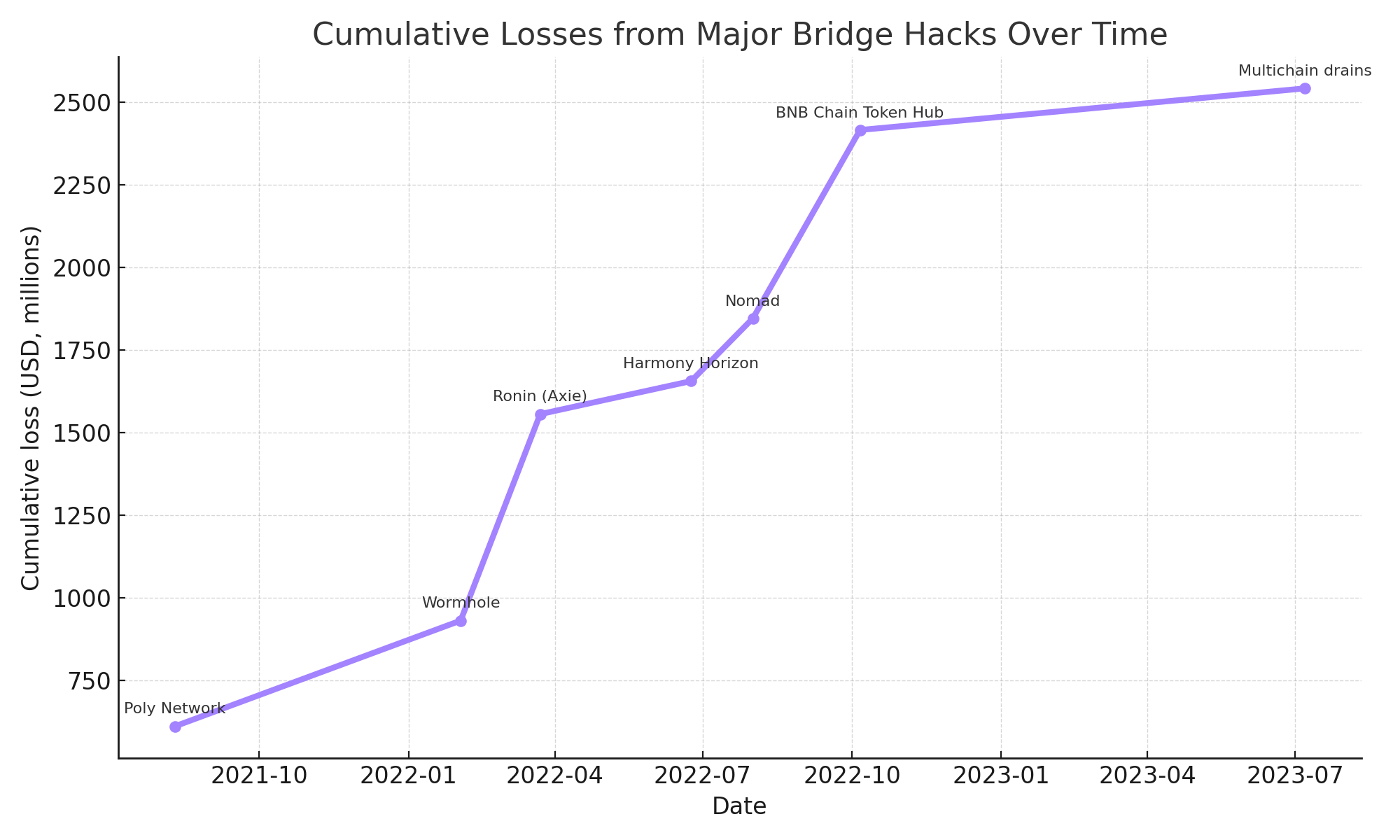Bridges were supposed to connect ecosystems. Instead, they exposed their weakest points. According to Chainalysis, cross-chain bridges have been the single largest target in crypto, with over $2.6 billion stolen with major incidents including Ronin ($625 M), Wormhole ($320 M), BNB Token Hub ($570 M), and Multichain ($126 M) with many others still unresolved. The whole point of crypto was to remove that trust gap, not rebuild it in a fancier way.